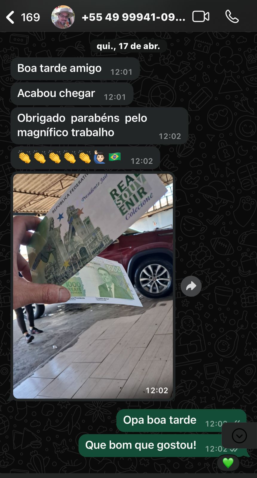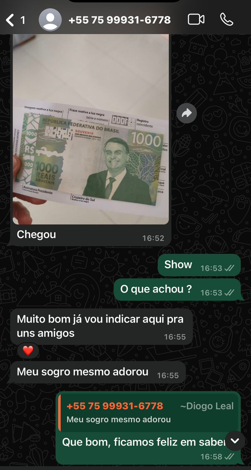 Ótima pergunta! Ela é feita em papel moeda, o mesmo material usado nas cédulas oficiais. Tem marca d’água, detalhes que brilham na luz negra e acabamento premium. É um produto de colecionador, feito pra quem carrega amor pela pátria e pelos nossos valores!